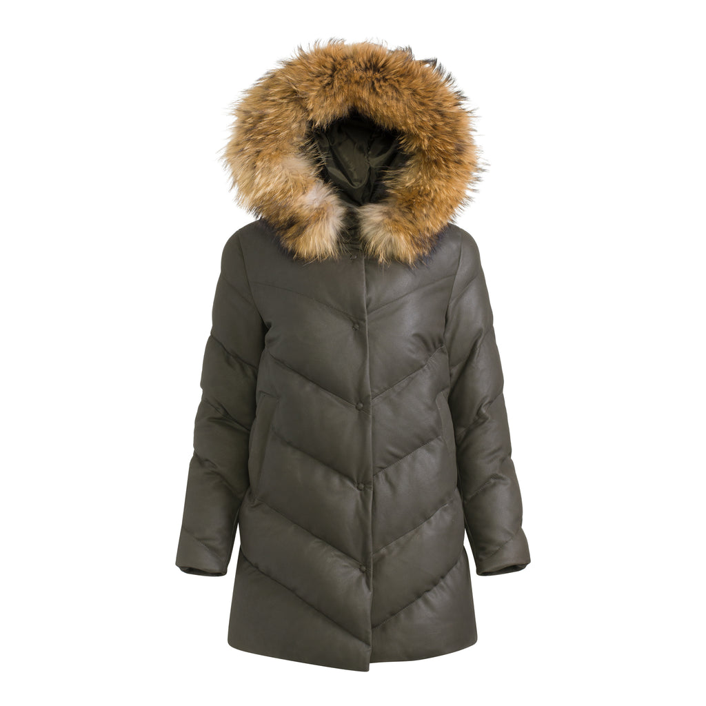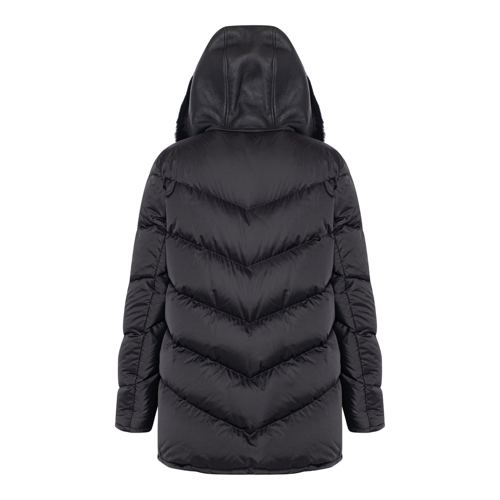 Rini Hooded Goose Down Quilted Leather Puffer Jacket