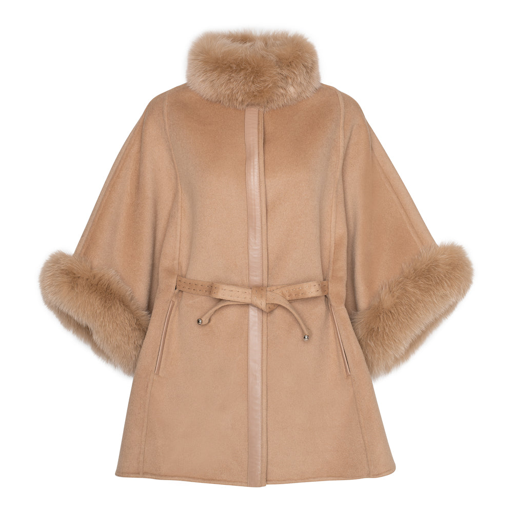 MELANIE Cashmere/Wool Cape with fox trim