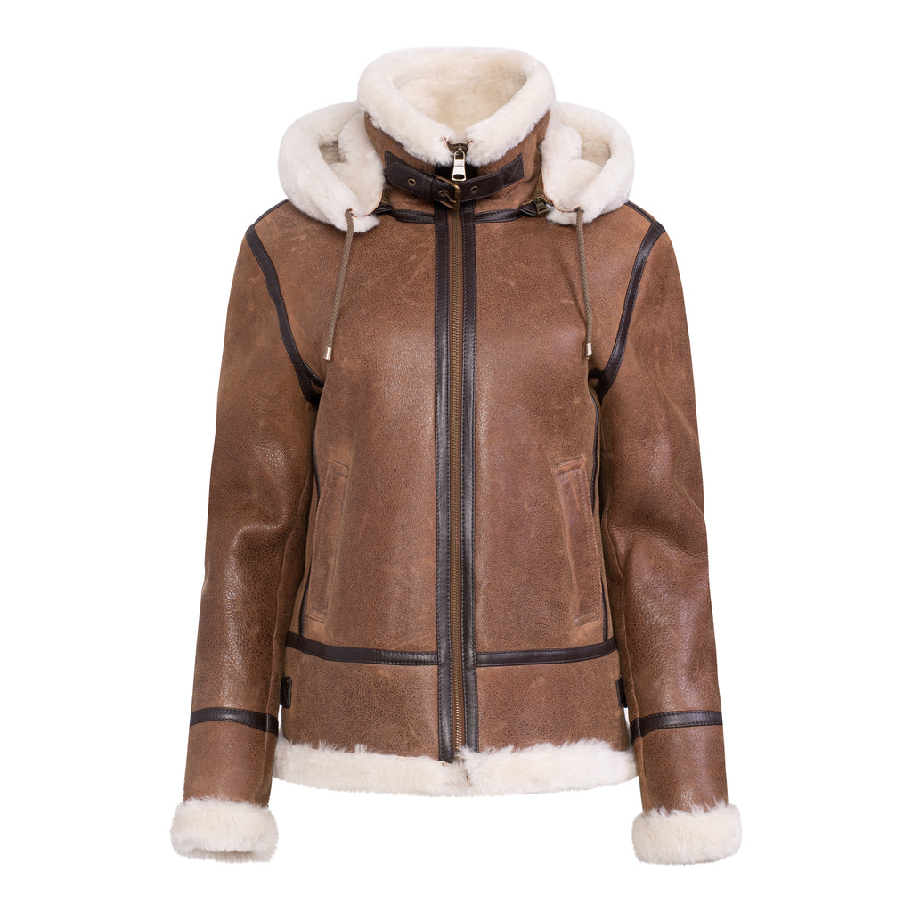 FAYER Reversible Hooded Shearling Sheepskin Teddy Coat