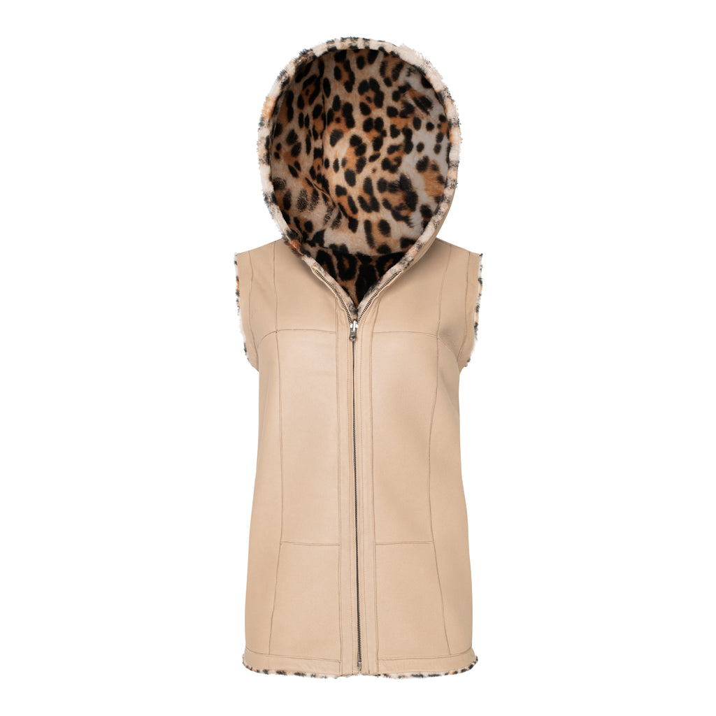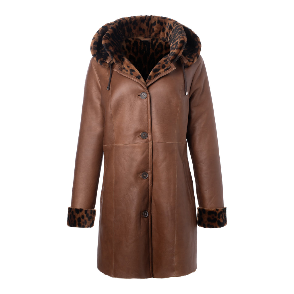 FAYER Reversible Hooded Shearling Sheepskin Teddy Coat