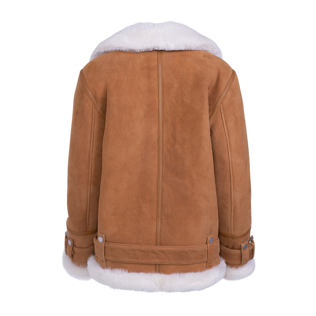 While shearling is warm, cozy, and suitable for cold weather, it is not a waterproof material and should not be worn in pouring rain or snow storms. Light rain and snow will not damage your shearling. When the garment is fully dry, simply brush off water stains with a lint brush.
