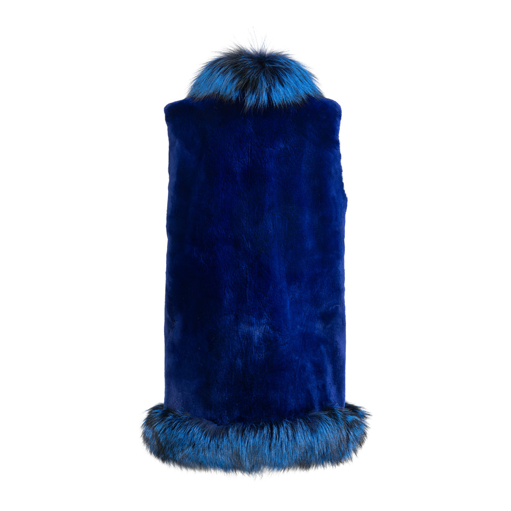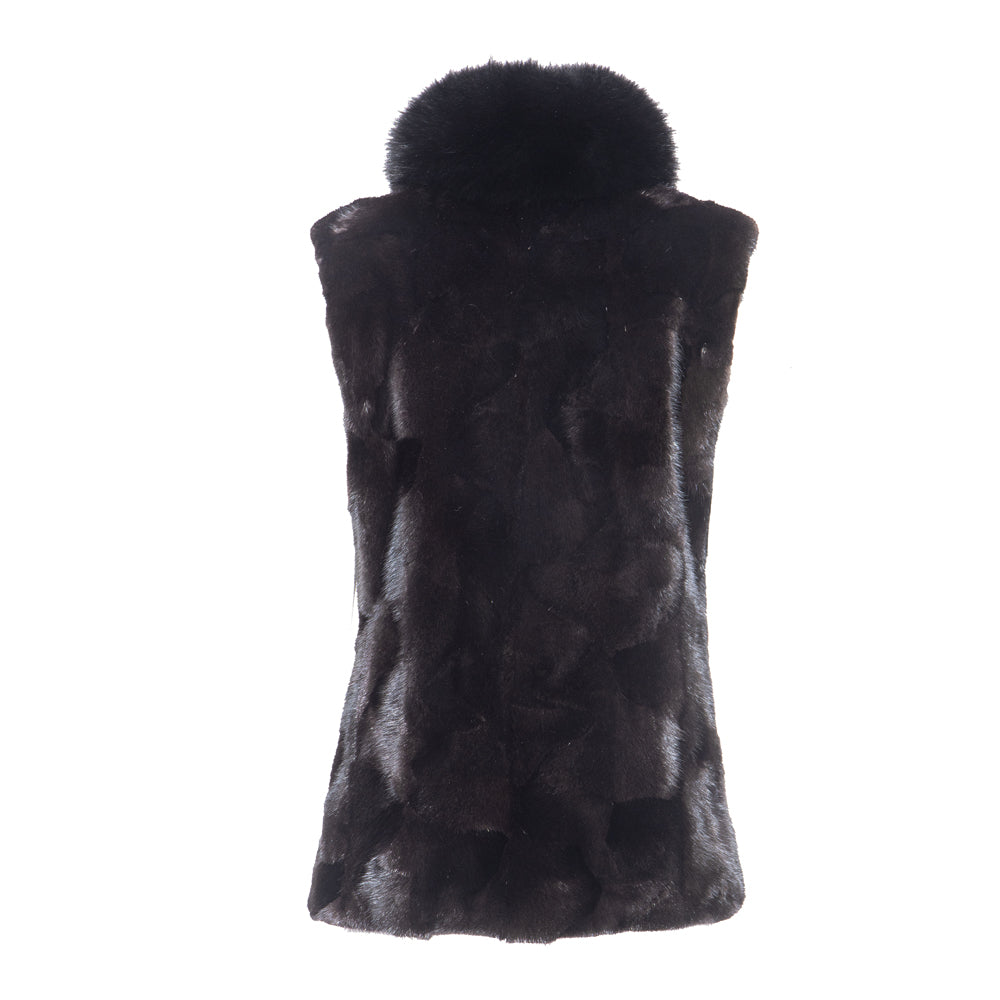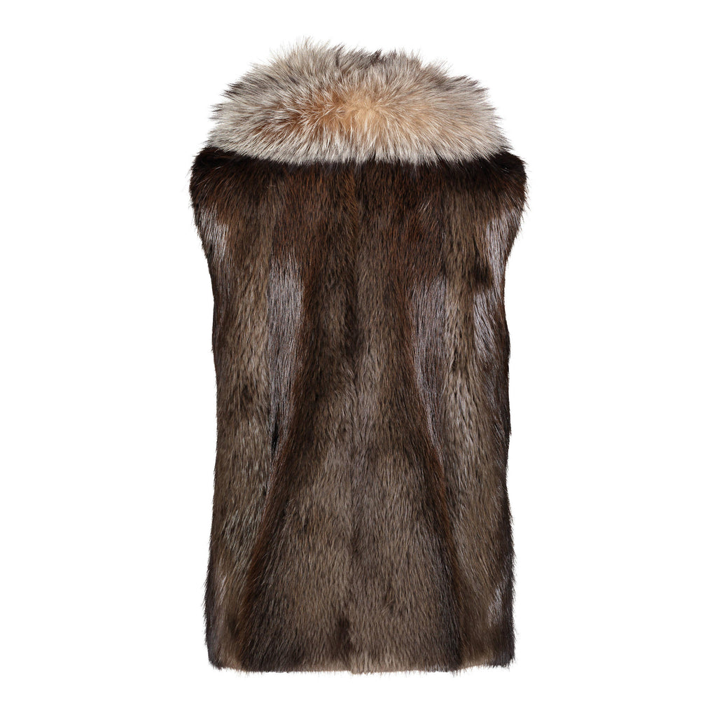 JOYCE Long hair beaver fur vest with fox fur tuxedo