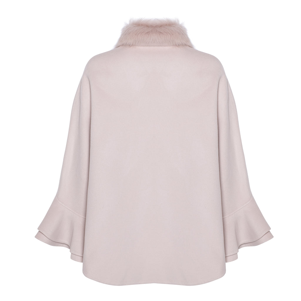 Mezzo Cashmere Blend Ruffle Rabbit Fur Trim Cape