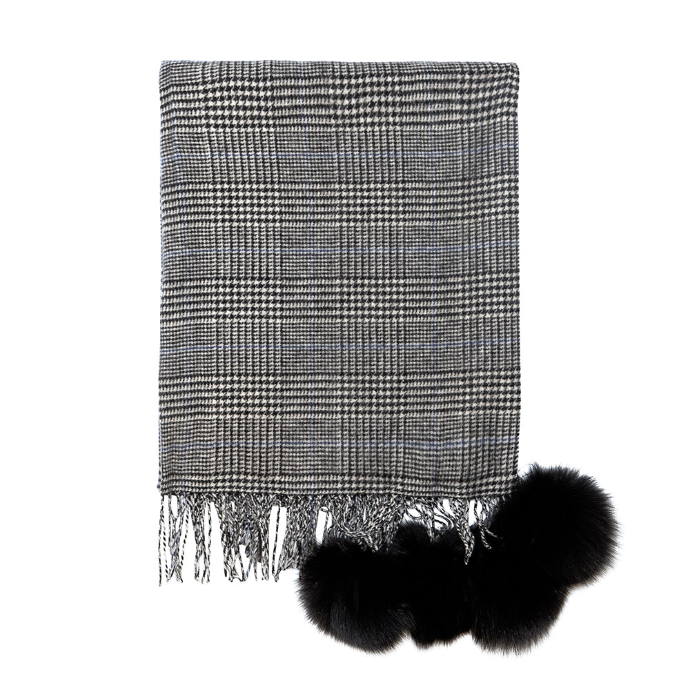 DIVINA Houndstooth Fox Pompon cashmere blend shawl