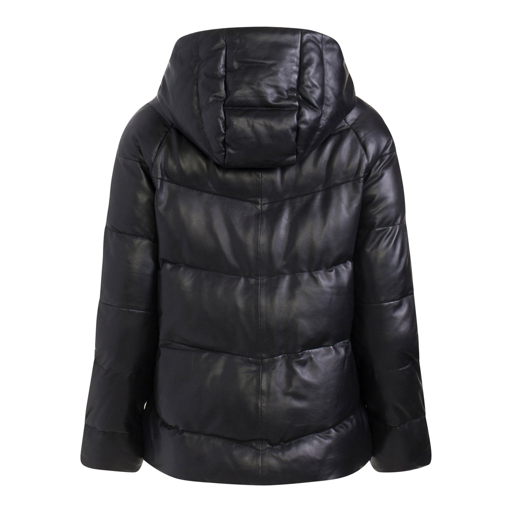 Rini Hooded Goose Down Quilted Leather Puffer Jacket
